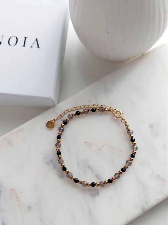 Klasyczna bransoletka z czarnym turmalinem i szarym kwarcem dymnym.
